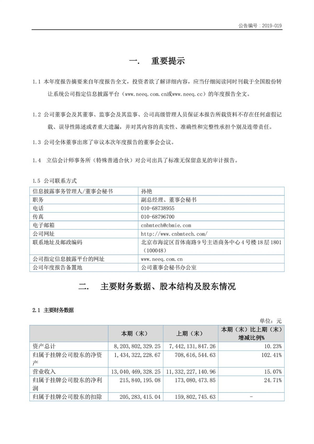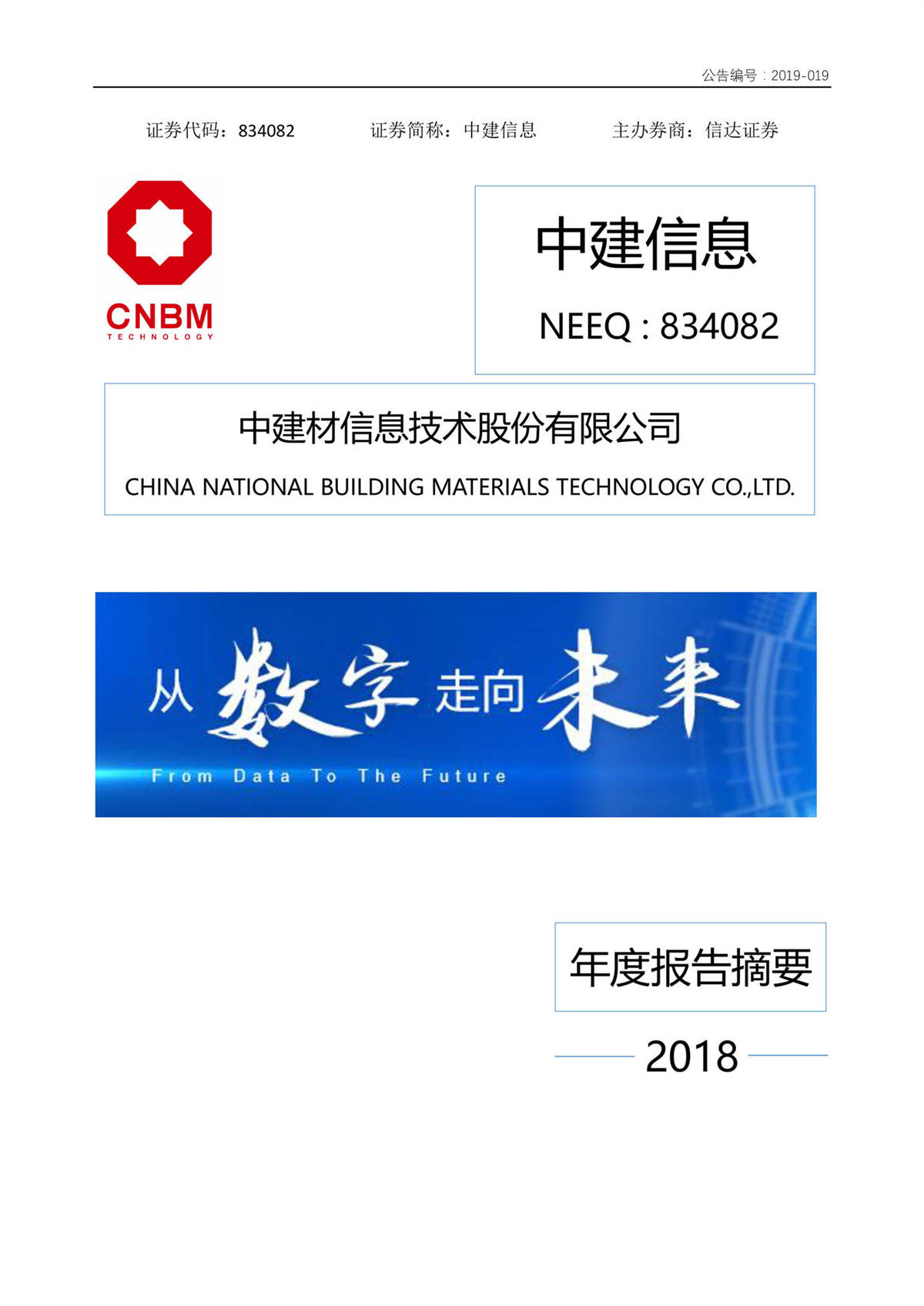 中建信息2018年年度報(bào)告摘要
